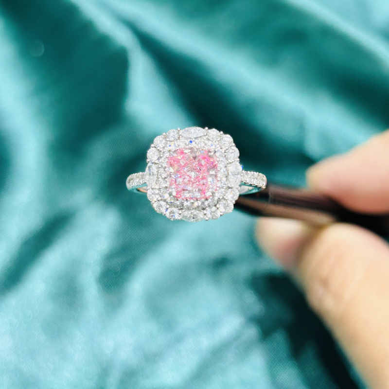 인증된 실험실 다이아몬드 보석 분홍색 쿠션 다이아몬드 주문 제작 고급 다이아몬드 반지