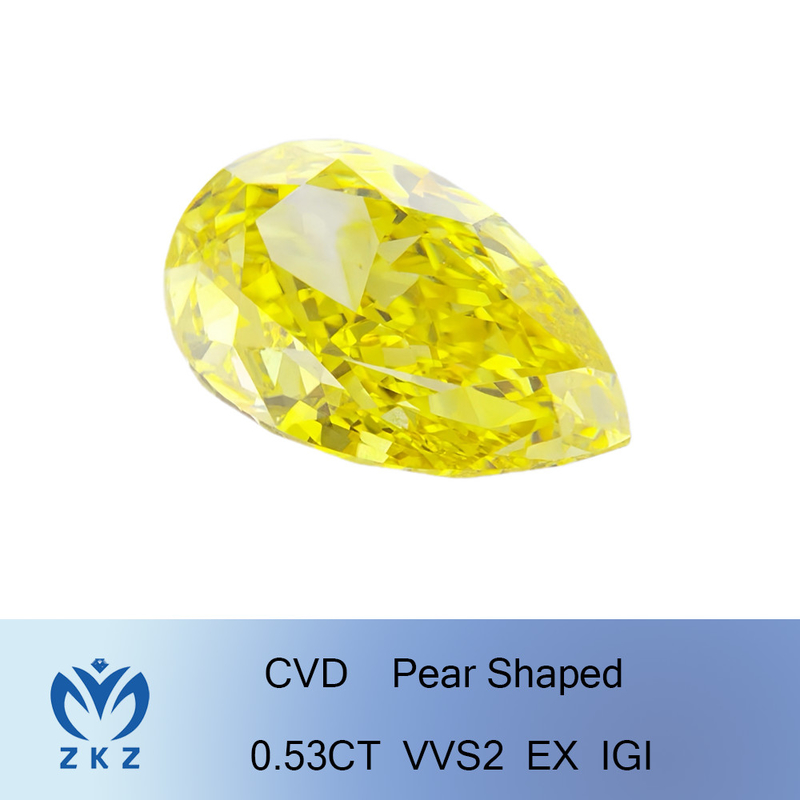 0.53카라트 페어 모양 VVS2 실험실 설치 없이 노란 다이아몬드를 만들었습니다