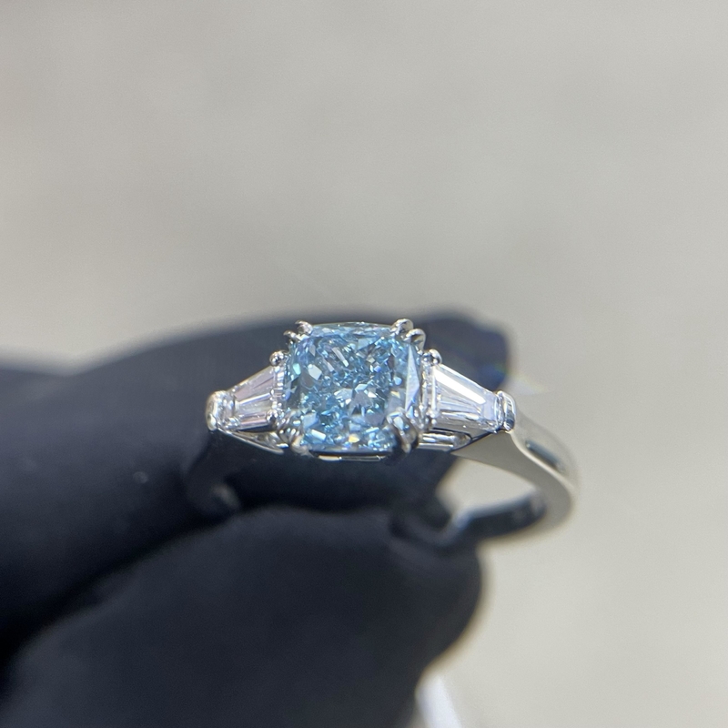 IGI 인증 1.13ct 쿠션 실험실에서 자란 파란색 합성 다이아몬드 18k 금 여성 사용자 정의 반지