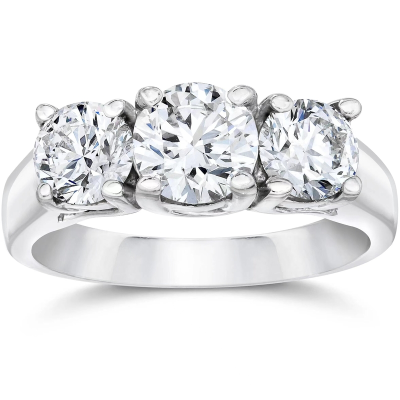 실험실에서 재배된 다이아몬드 보석 클래식 스타일 3개의 돌 흰색 둥근 모양 약혼 반지 결혼식 반지 파티와 기념일을 위한 둥근 다이아몬드 반지