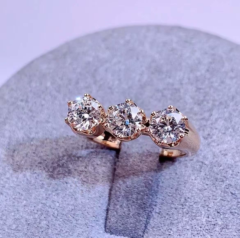• 3개의 돌 스타일 둥근 모양 실험실에서 자란 다이아몬드 반지 18K 황금 반지