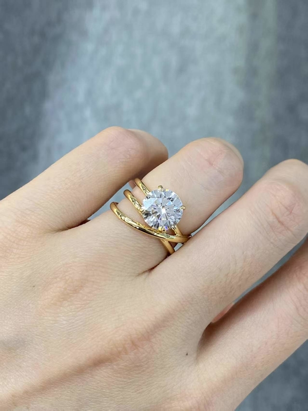 • 독특한 디자인 라운드 컷 랩 그로운 다이아몬드 링 18k 옐로우 골드 패셔너블