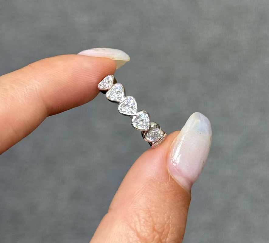 1.1ct 하트 쉐입 랩 그로운 다이아몬드 링 PT950 플래티넘 세팅 웨딩 밴드